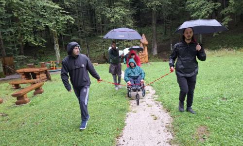 Odbor InPlaninec se je odločil, da bomo pot proti koče na Jelenovem studencu v soboto, 14. 9. 2024, opravili po dveh poteh. Prva skupina, v katero so se vključili pohodniško bolj pripravljeni člani, je startala v Kočevju in se je odpravila mimo gradu Fridrihštaj do koče. Druga skupina, ki so jo sestavljali pohodniki z invalidskimi vozički in manj pripravljeni pohodniki, pa se je podala od križišča cest za grad in kočo po gozdni in makadamski poti dolžine 4 km. Dež izpred dveh dni je poškodoval cesto, zato se pohoda niso mogli udeležiti pohodniki z električnimi vozički. Razmočen teren so pohodniki premagali s pomočjo neutrudnih prostovoljcev. Vztrajnost in skupna moč sta nas pripeljali do cilja, ne glede na ovire! Zahvaljujemo se Planinskemu društvu Kočevje za odlično vodenje na pohodu, topel sprejem in slastno pogostitev. Hvala, počutili smo se resnično sprejete v vaši prijetni, udobni in topli koči. Družba je bila vesela, radoživa nad opravljenim novim planinskim podvigom. Naslednji GOGO pohod bo v soboto, 5. oktobra na Gore. Se vidimo tam gori.
