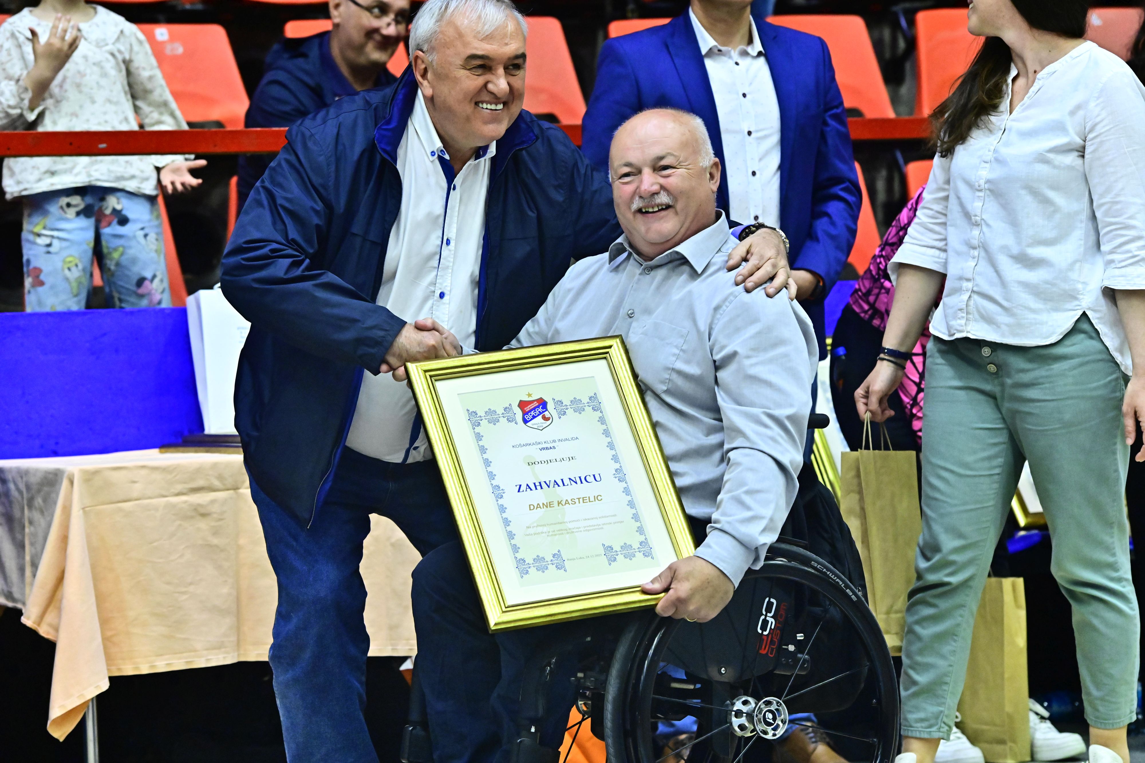 Danes se je Marinko Umičević vsem podjetjem ter Danetu Kastelicu, predsedniku Zveze paraplegikov Slovenije, ter Gregorju Gračnarju, vodji Lige NLB Wheel, zahvalil s podelitvijo priznanj. V imenu vseh, ki so prejeli zahvalo, pa je Dane Kastelic, svoj čas tudi sam košarkarski reprezentant, danes pa predsednik Zveze paraplegikov Slovenije, izpostavil pomen sodelovanja in medsebojne pomoči.